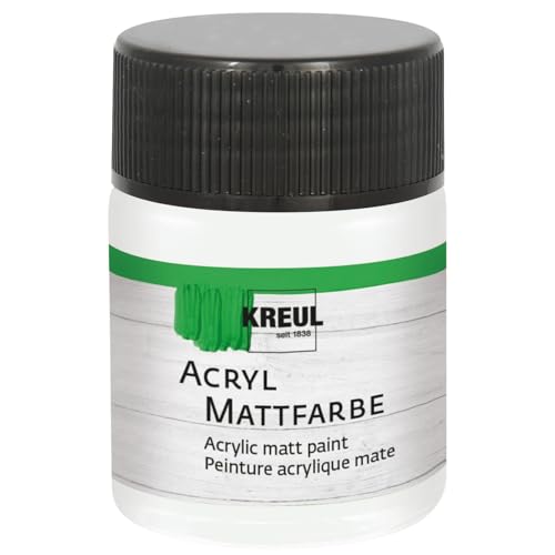 KREUL 75501 - Peinture acrylique mate, blanc en pot de 50 ml, peinture crémeuse et couvrante, séchage rapide, à base d'eau, convient à de nombreux supports différents