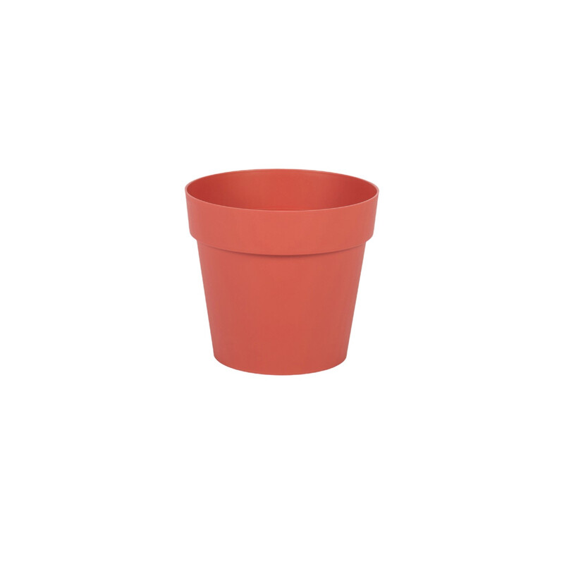 EDA - Pot de Fleur Rond Toscane Ø 20 cm - 3 L - Intérieur & Extérieur - Zone de rétention d'eau pour Limiter l'Arrosage - Plastique Recyclé - Ø 20 x H.17 cm - Orange Terre Battue