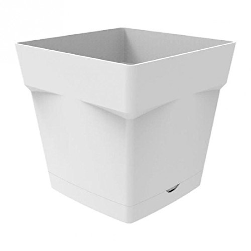 EDA Plastiques Pot Toscane carré avec Soucoupe clipsée 13641 BL SX6 Blanc 17,4 x 17,4 x 17 cm