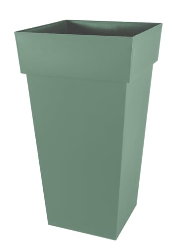 EDA - Pot de Fleur Carré Haut Toscane - Volume 62 L - 39 x 39 x H.65 cm, Vert Laurier