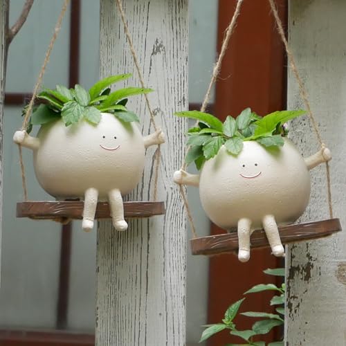 Xzunk Lot de 2 pots de fleurs à suspendre pour plantes d'intérieur - Pots de fleurs à suspendre sur le visage - Pot de fleurs en résine pour plantes grasses - Idées cadeaux pour mère