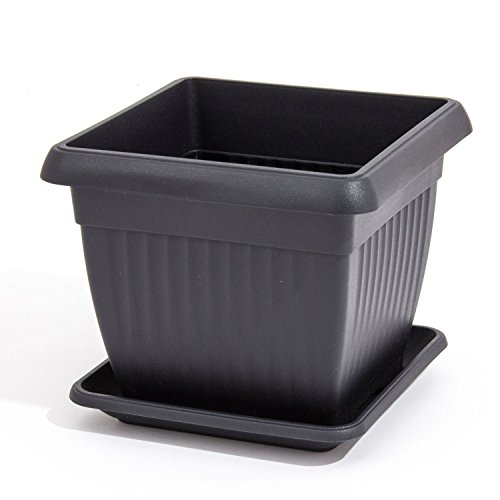 LAMELA Pot Carré avec Soucoupe Intégrée - 25 x 25 cm x 27,5 cm, 8 L - Plastique léger et résistant - Intérieur et extérieur - Anthracite