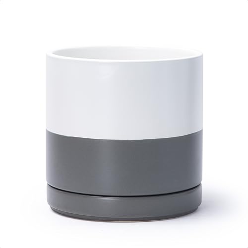 D'vine Dev Pot de Fleurs Rond en céramique avec Trou de Drainage et Soucoupe pour intérieur - 20,3 cm, Blanc/Gris moucheté, 94-O-M-6