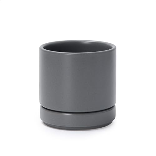 D'vine Dev Pot de Fleurs Rond en céramique avec Trou de Drainage et Soucoupe pour intérieur - 11 cm - Gris - 94-O-XS-3