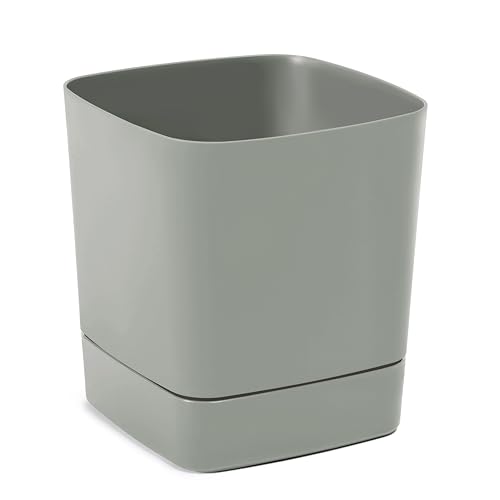 LAMELA Pot Carré avec Soucoupe Intégrée - 25 x 25 cm x 27,5 cm, 8 L - Plastique léger et résistant - Intérieur et extérieur - Gris-Vert