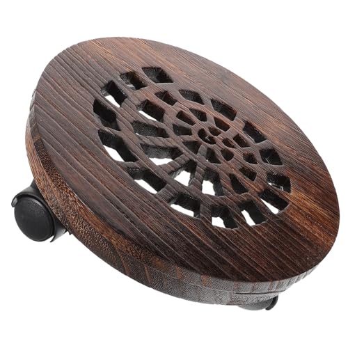 CLISPEED Support Pot de Fleur Mobile Bois avec roulettes Rotatives Porte-Plantes Robuste pour Intérieur et Extérieur Chariot Rond pour Jardins et Balcons