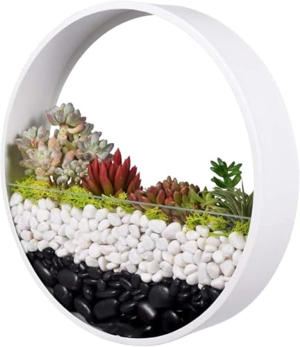 Jardinière Murale Ronde en Métal, Porte-Plante De Pot De Fleur Suspendu Mural, Art De Décoration Murale Moderne pour Jardin De Balcon, Plantation De Plante Aérienne, White, 20cm/10inch