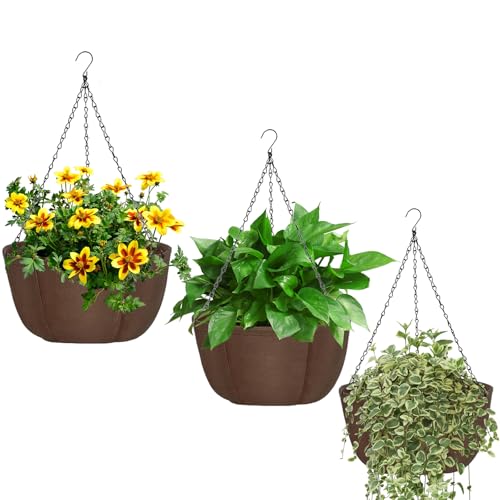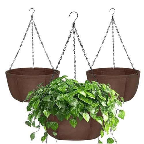 Lot de 3 Pots Fleurs Suspendus, Respirant Non Tissé Pot De Fleur Suspendu avec Chaîne Antirouille, Intérieur et Extérieur Panier Suspendu Décoration murale pour Porches Terrasses Balcons Jardin