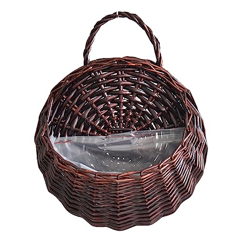 Pot de fleurs suspendu pour clôture murale - Panier en rotin fait à la main - Panier à fleurs en rotin tressé à la main - Décoration de jardin - Pour l'intérieur et l'extérieur - Café - A