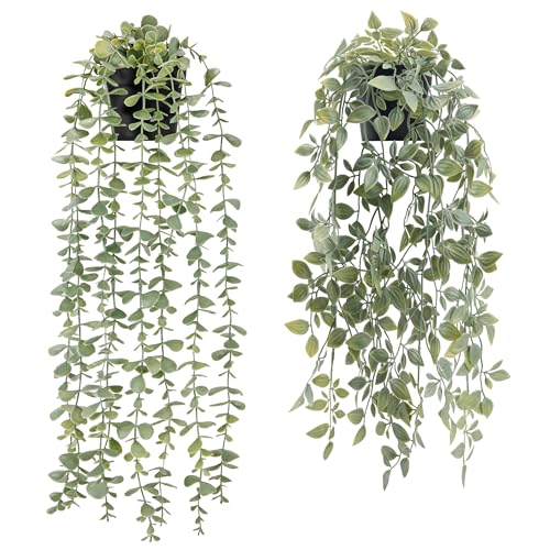 BTSD-home Lot de 2 plantes artificielles à suspendre en pot pour intérieur ou extérieur, maison, étagère murale, terrasse, bureau