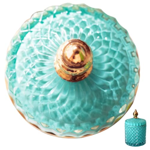KAILIKETIY Bonbonnière en Verre Bleu Couvercle, Pot de Rangement la Cuisine Multifonction pour Thé et Bijoux, Protection Optimale des Objets Intérieurs