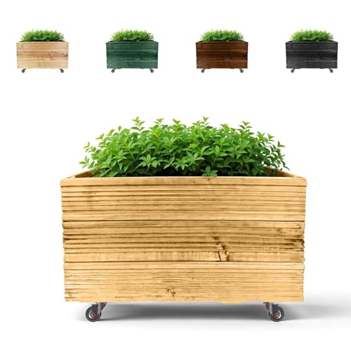 Floranica Bois de Mélèze Jardinières Pot de Fleurs Plantes en Pot Bac Coffre de Jardin Exterieur Trou De Drainage rectangulaire Patio Terrasse 4 Roues 50cm x 53 x 28cm Natural