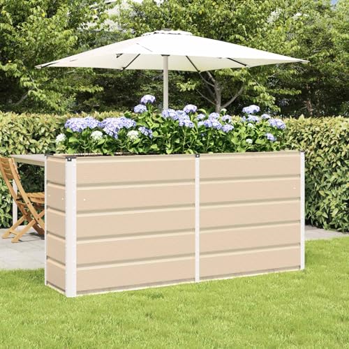 Runheo Jardinière Ivoire en Acier galvanisé 195 x 100 x 45 cm Pot rectangulaire extérieur Robuste pour Planter Fleurs et légumes, lit de Jardin surélevé Design Moderne