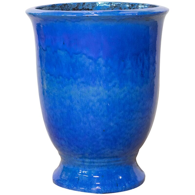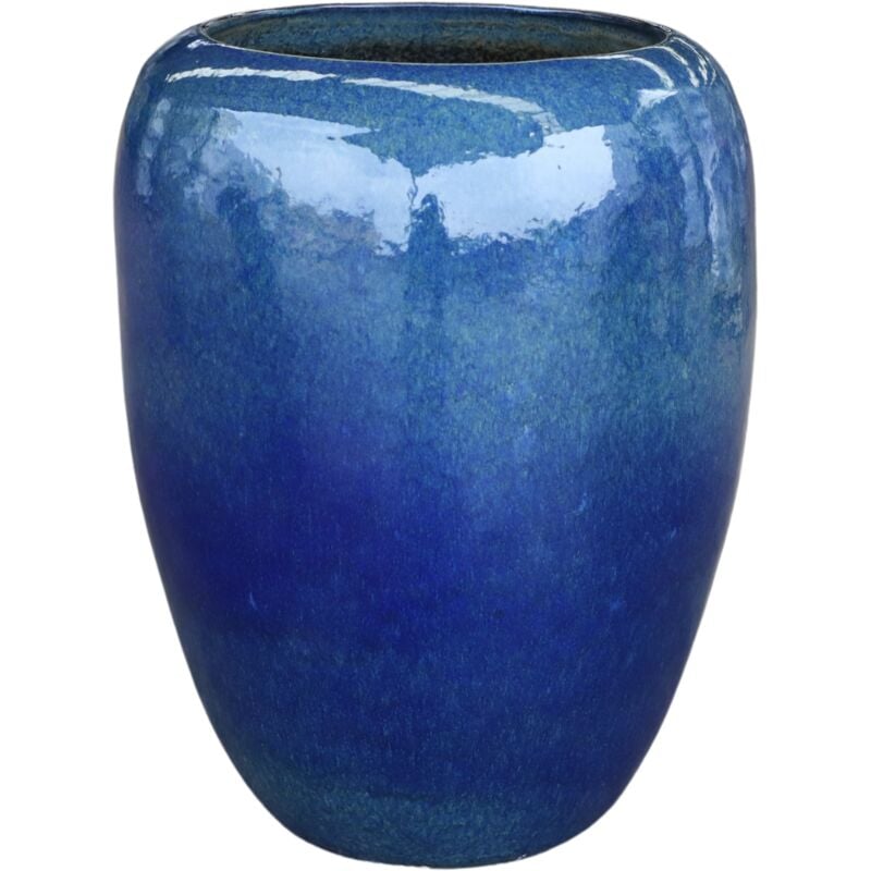 Pot grande taille d'extérieur MAZARIN2 45x60cm saphir, fait main en terre cuite émaillée, résistant au gel