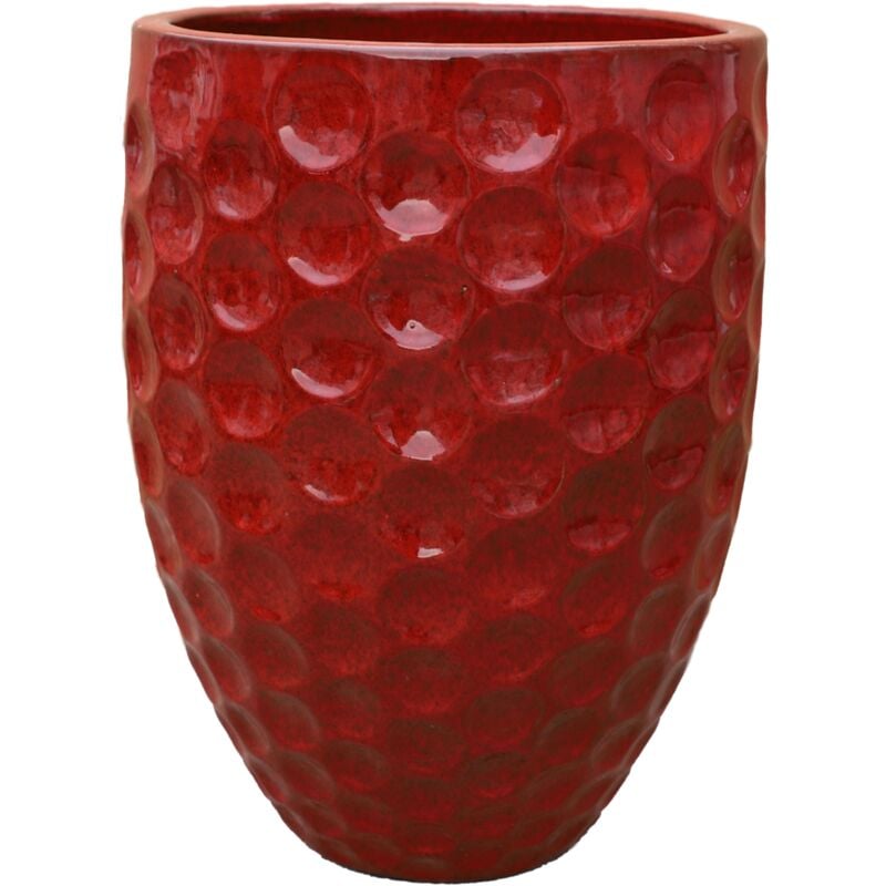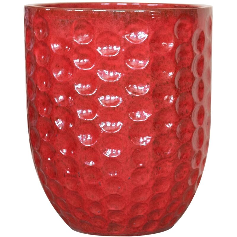 Pot grande taille d'extérieur SOCRATE 32x33cm rouge tropical, fait main en terre cuite émaillée, résistant au gel