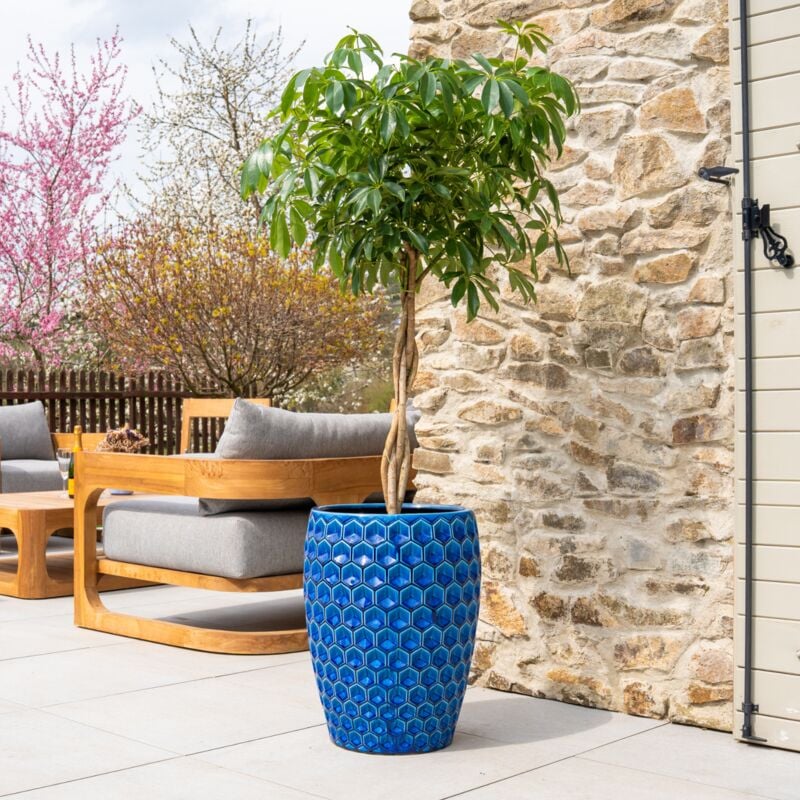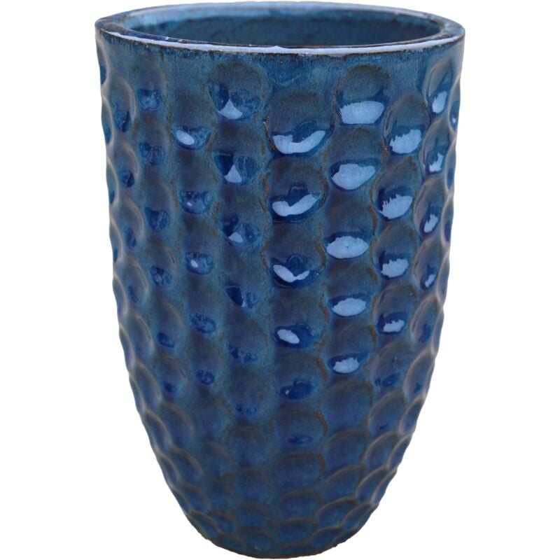 Pot grande taille d'extérieur MAZARIN2 37x49cm saphir, fait main en terre cuite émaillée, résistant au gel