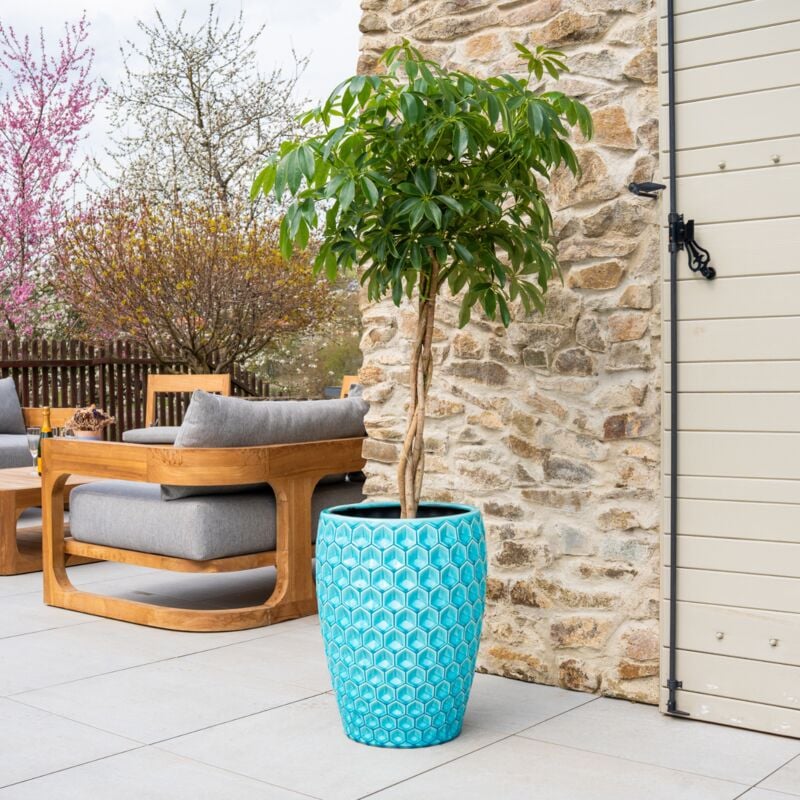Pot grande taille d'extérieur COCOON 66x76cm bleu océan, fait main en terre cuite émaillée, résistant au gel
