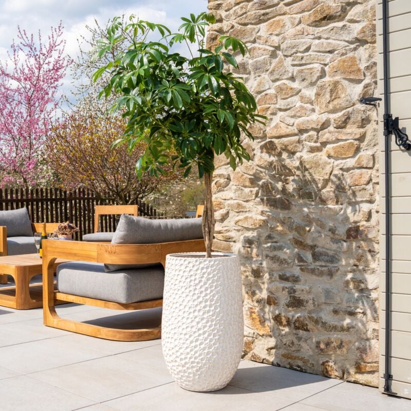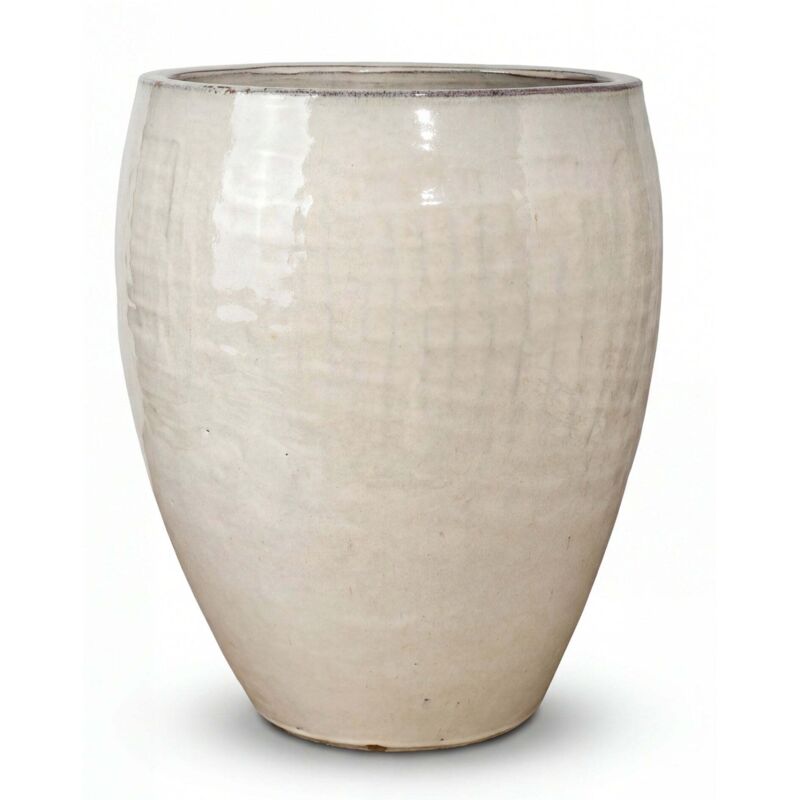 Pot grande taille d'extérieur MEROVEE 55x65cm perle, fait main en terre cuite émaillée, résistant au gel