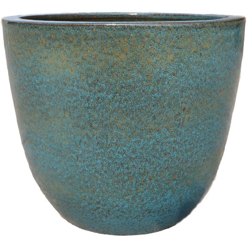 Pot grande taille d'extérieur POSEIDON2 28x31cm vert lac, fait main en terre cuite émaillée, résistant au gel