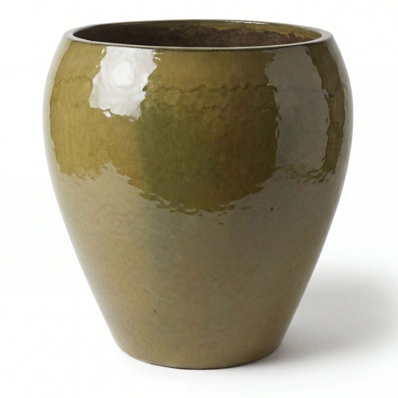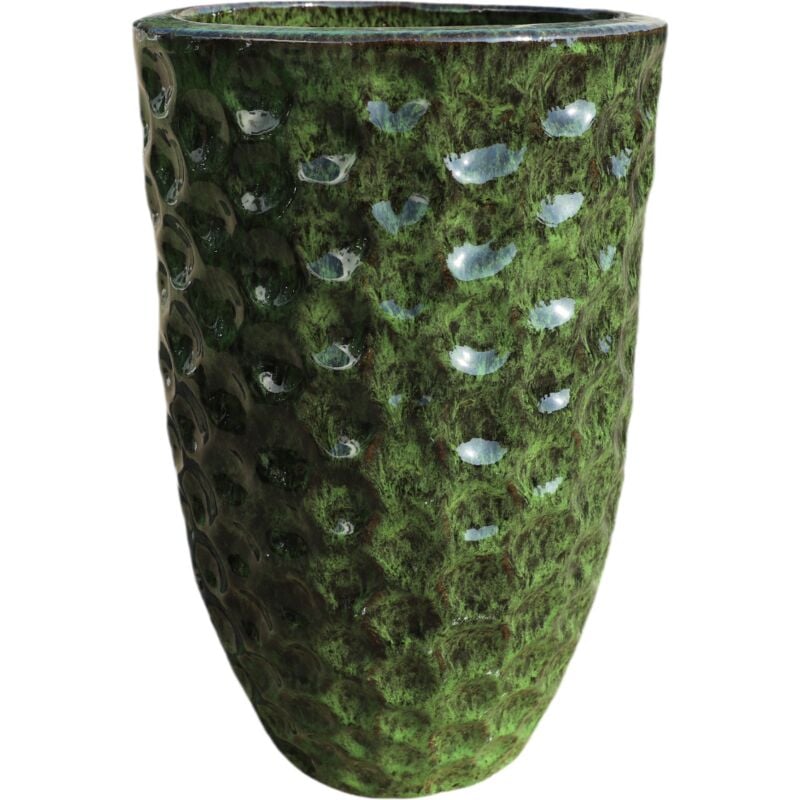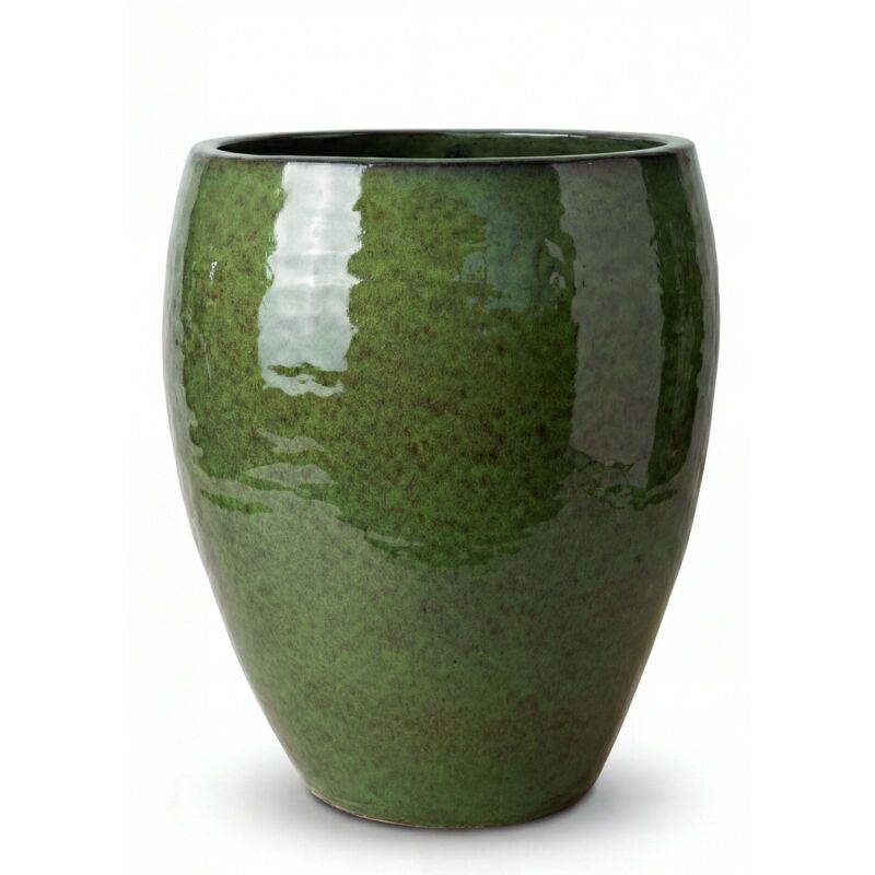 Pot grande taille d'extérieur merovee 42x55cm vert tropical, fait main en terre cuite émaillée, résistant au gel