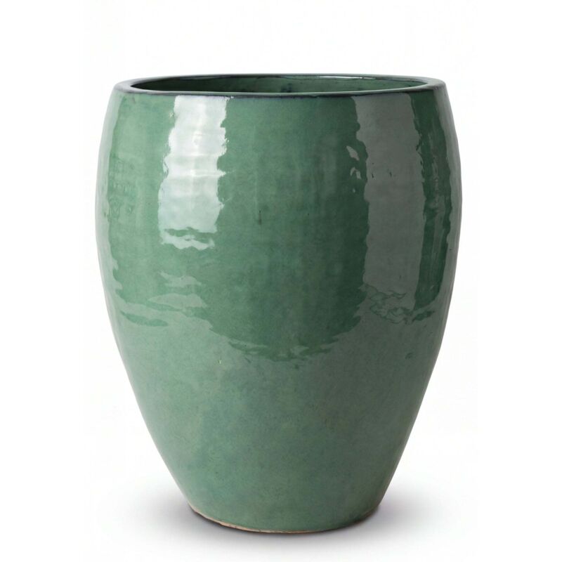 Pot grande taille d'extérieur BACCHUS 36x52cm vert tropical, fait main en terre cuite émaillée, résistant au gel