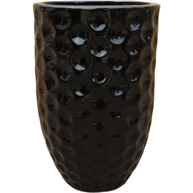 Pot grande taille d'extérieur NEWTON 34x28cm noir, fait main en terre cuite émaillée, résistant au gel