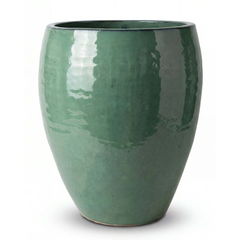 Pot grande taille d'extérieur POSEIDON 46x55cm vert tropical, fait main en terre cuite émaillée, résistant au gel