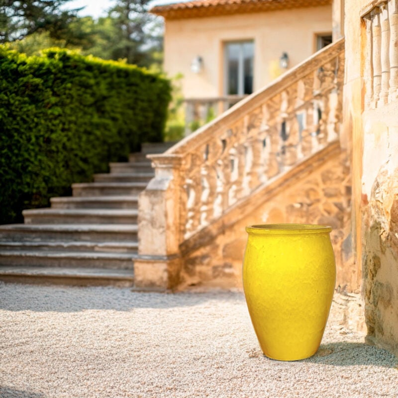 Pot grande taille d'extérieur BACCHUS 50x68cm jaune, fait main en terre cuite émaillée, résistant au gel