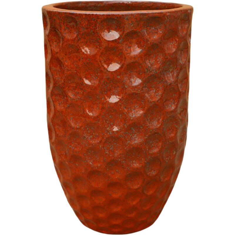 Pot grande taille d'extérieur POSEIDON2 46x55cm rouge tropical, fait main en terre cuite émaillée, résistant au gel