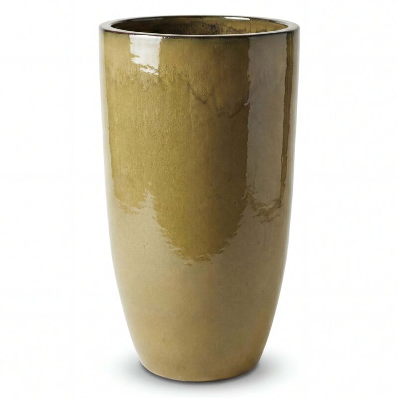 Pot grande taille d'extérieur lancelot 57x50cm vert tropical, fait main en terre cuite émaillée, résistant au gel