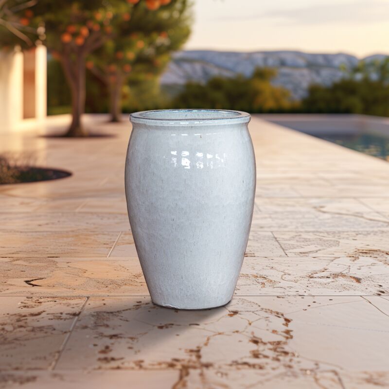 Pot grande taille d'extérieur MEROVEE 23x35cm perle, fait main en terre cuite émaillée, résistant au gel