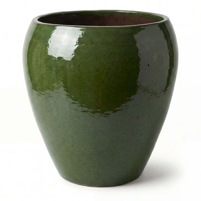 Pot grande taille d'extérieur MERCURE 39x51cm vert profond, fait main en terre cuite émaillée, résistant au gel