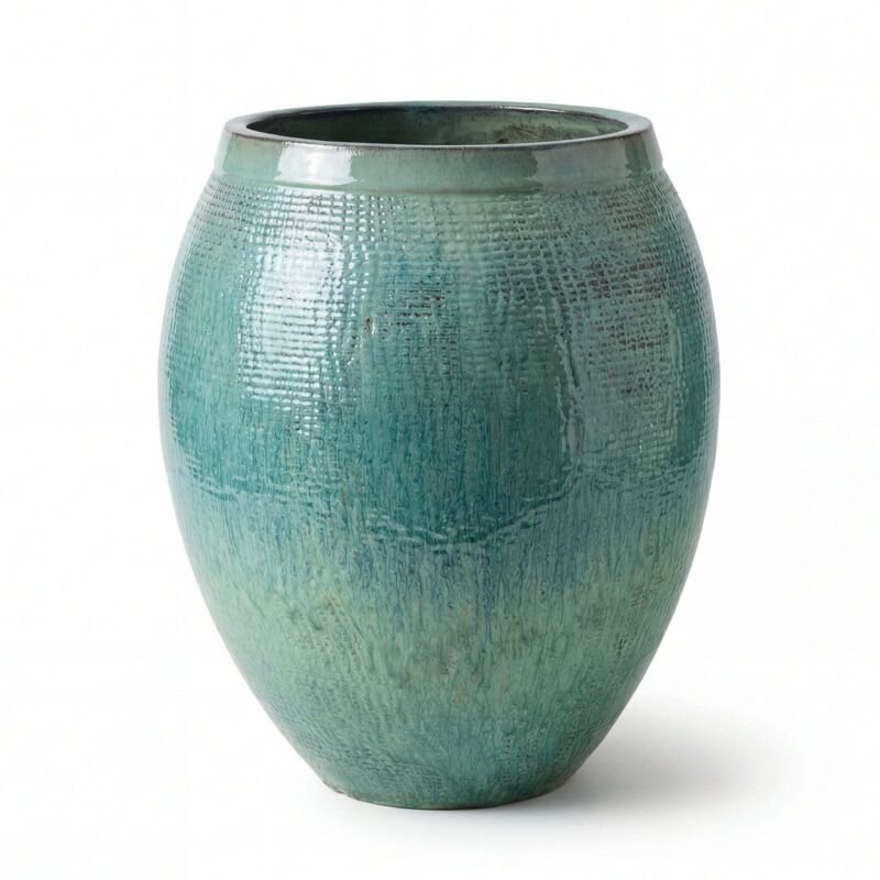 Pot grande taille d'extérieur POSEIDON 46x55cm jade, fait main en terre cuite émaillée, résistant au gel