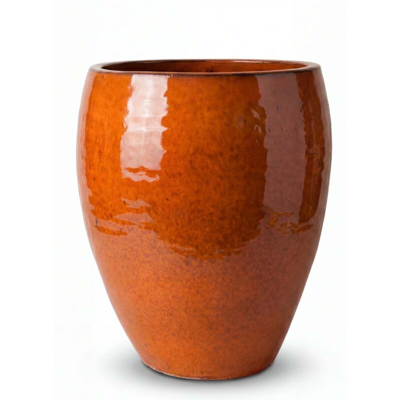 Pot grande taille d'extérieur CLOVIS 86x64cm orange tropical, fait main en terre cuite émaillée, résistant au gel