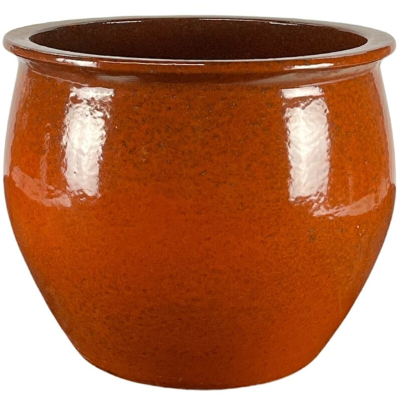 Pot grande taille d'extérieur NEWTON 44x35cm orange tropical, fait main en terre cuite émaillée, résistant au gel