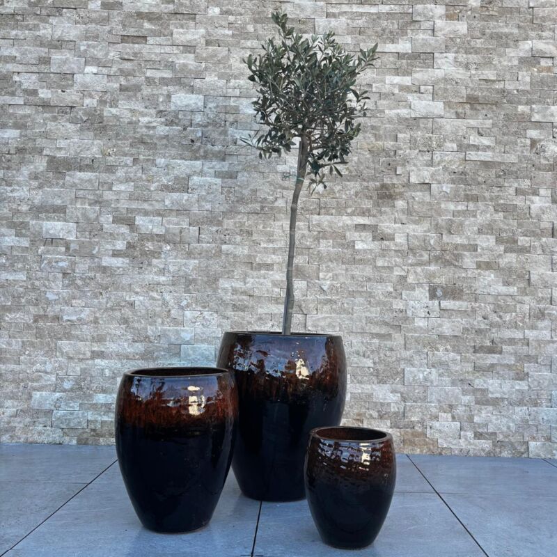 Pot grande taille d'extérieur MEROVEE 23x35cm noir, fait main en terre cuite émaillée, résistant au gel
