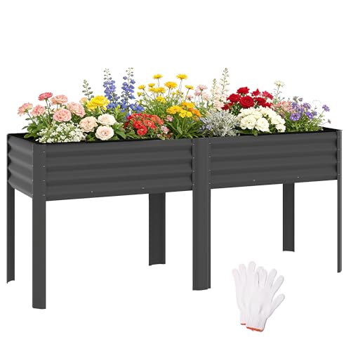 Jardinière Acier Enduit de Poudre WIFESE 296x80x36cm Argentée Grande Taille Balcon Potager sur Pieds