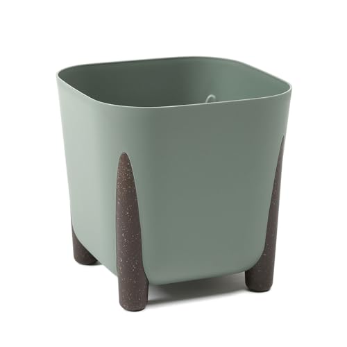LAMELA Pot de Fleurs avec Drainage 21 cm, 6L - Pot sur Pieds Stylés - Plastique Intérieur et Extérieur, Vert