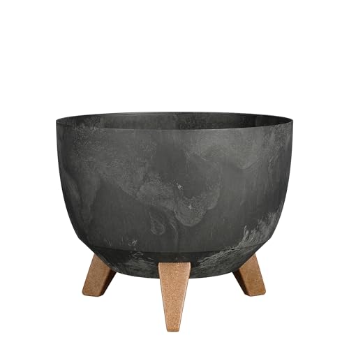 LAMELA Pot de Fleurs Rond sur Pieds - Plastique Robuste - Ø 27 cm x H 17 cm, 7,4 L - Résistant et Facile d'entretien - Intérieur et Extérieur - Noir
