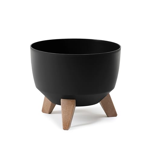 LAMELA Pot de Fleurs avec Drainage 21 cm, 6L - Pot sur Pieds Stylés - Plastique Intérieur et Extérieur, Noir