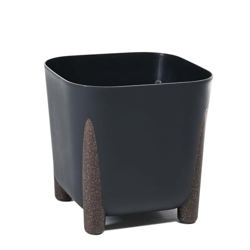 LAMELA Pot de Fleurs avec Drainage 21 cm, 6L - Pot sur Pieds Stylés - Plastique Intérieur et Extérieur, Anthracite