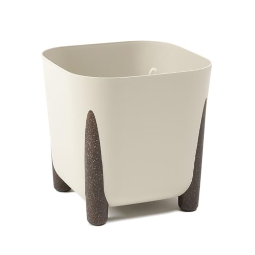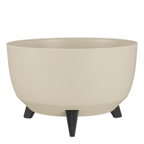 LAMELA Pot de Fleurs avec Drainage 21 cm, 6L - Pot sur Pieds Stylés - Plastique Intérieur et Extérieur, Beige