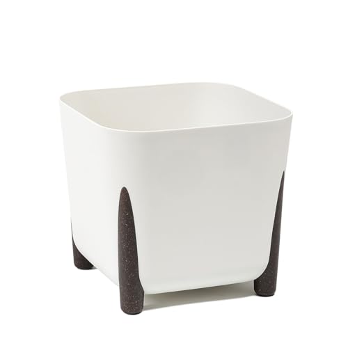 LAMELA Pot de Fleurs avec Drainage 21 cm, 6L - Pot sur Pieds Stylés - Plastique Intérieur et Extérieur, Blanc