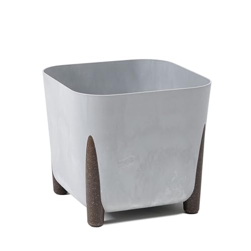 LAMELA Pot de Fleurs avec Drainage 21 cm, 6L - Pot sur Pieds Stylés - Plastique Intérieur et Extérieur, Aspect Béton Gris