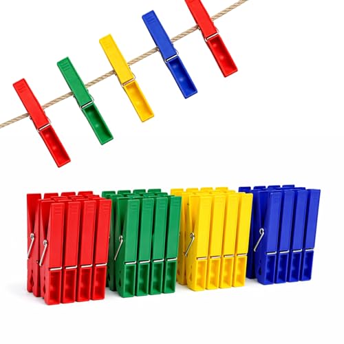PARENCE.- Lot de 20 Pinces à Linge en Plastique Intérieur et Extérieur / 5x1,2cm / Pinces Polyvalentes et Pratiques - Variété de Couleurs (Bleu, Jaune, Rouge, Vert)