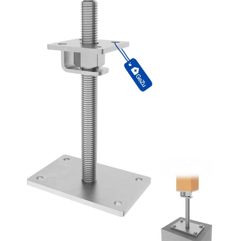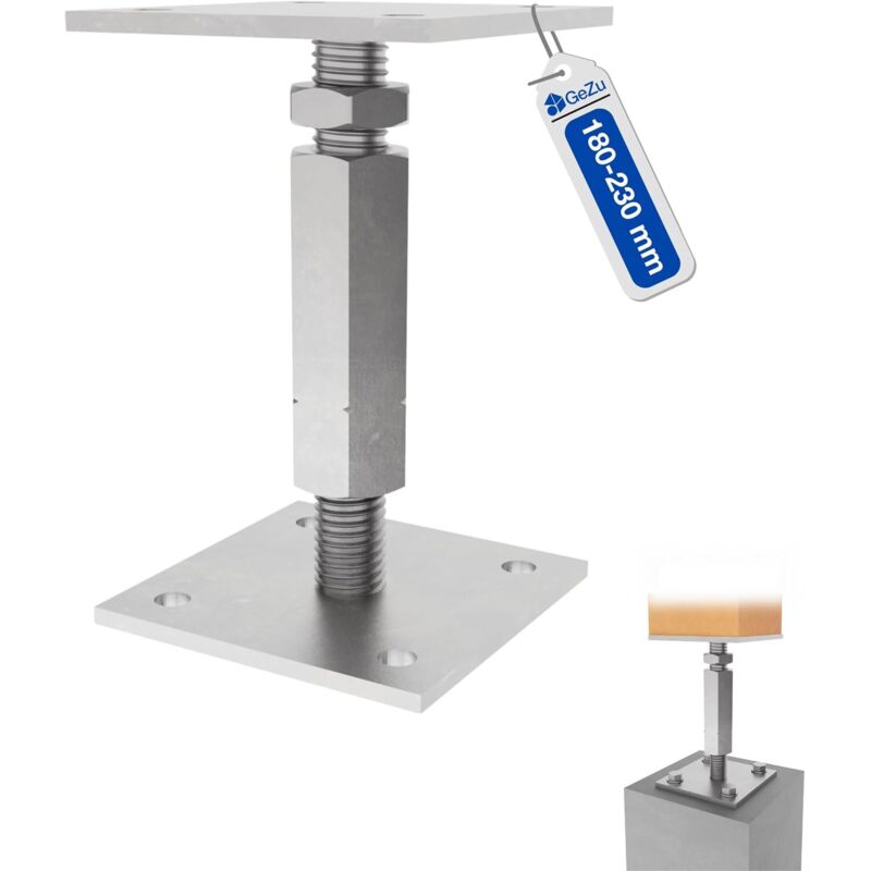 Pied de poteau carré réglable galvanisé à chaud 100 x 100 mm – hauteur ajustable 60 à 230 mm avec platine bois pour clôtures – GeZu Impex