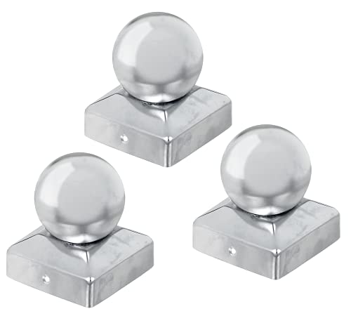 Alberts 327217 Capuchon pour poteau en bois | avec tête sphérique | acier inoxydable | 70 x 70 mm | Set de 3 pièces