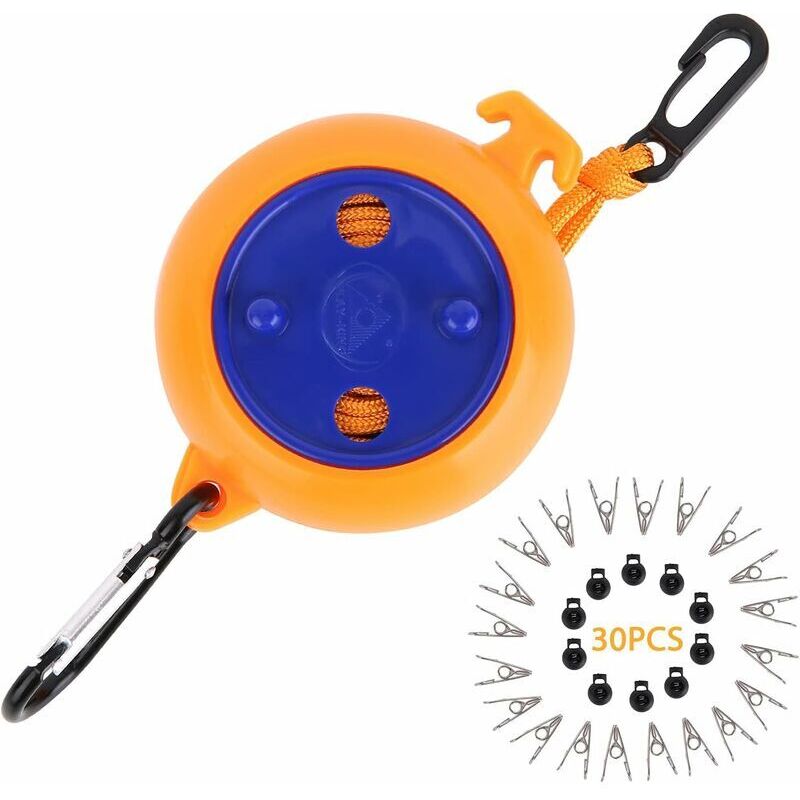 Corde à Linge Rétractable, Fil Linge Extensible Portable de 8 m, Étendoir Camping Fil d'extérieur avec 10 Boucles Fixes et 20 Pinces à Linge (Couleur