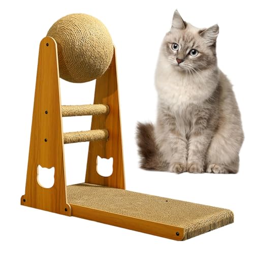 Grattoir pour Chat - Jouet en sisal Naturel avec à Chat - Balle griffoir Interactive en Bois Massif - Poteau griffoir pour Chat avec Boule Rouge pour Chat