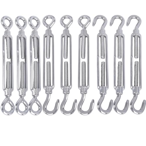 Eiflayn Tendeur Cable,9 Pièces M5 Tendeur En Acier Inox 304,Tendeur Fil de Fer et Crochet/Oeil,Crochet/Crochet,Oeil/Oeil,pour Tendeur de Voile D'ombrage,Fil de Jardin,Corde à Linge